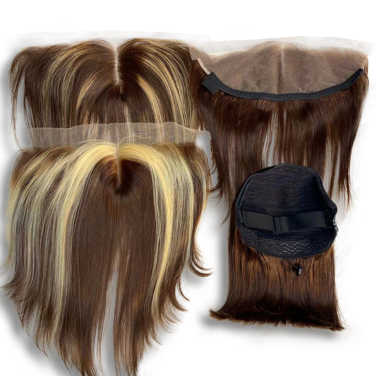 1 Base + 3 pcs frontal Replace Zip Wig